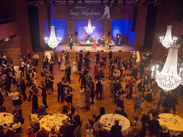 Die Thüringer Tanz-Akademie führt seit mehr als zwei Jahrzehnten mit hervorragenden Tanzorchestern durch zauberhafte Ballnächte in Weimar. Mitreißende Standard- und Latino-Ballrunden mit dem Moonlight-Orchestra sowie Schautänze und Showprogramme machen den Frühlingsball 2026 zu einem herausragenden Erlebnis für alle Debütanten und Gäste. Der Festsaal der Weimarhalle ist in seiner Eleganz, gekrönt von mächtigen Kristall-Leuchtern und einer beeindruckend großen Tanzfläche, für die Bälle der Tanz-Akademie ein idealer Veranstaltungsort und rundet diese exklusiven Tanzvergnügen mit seinem Ambiente hervorragend ab. Ein Geheimtip, nicht nur für Gesellschaftstänzer …