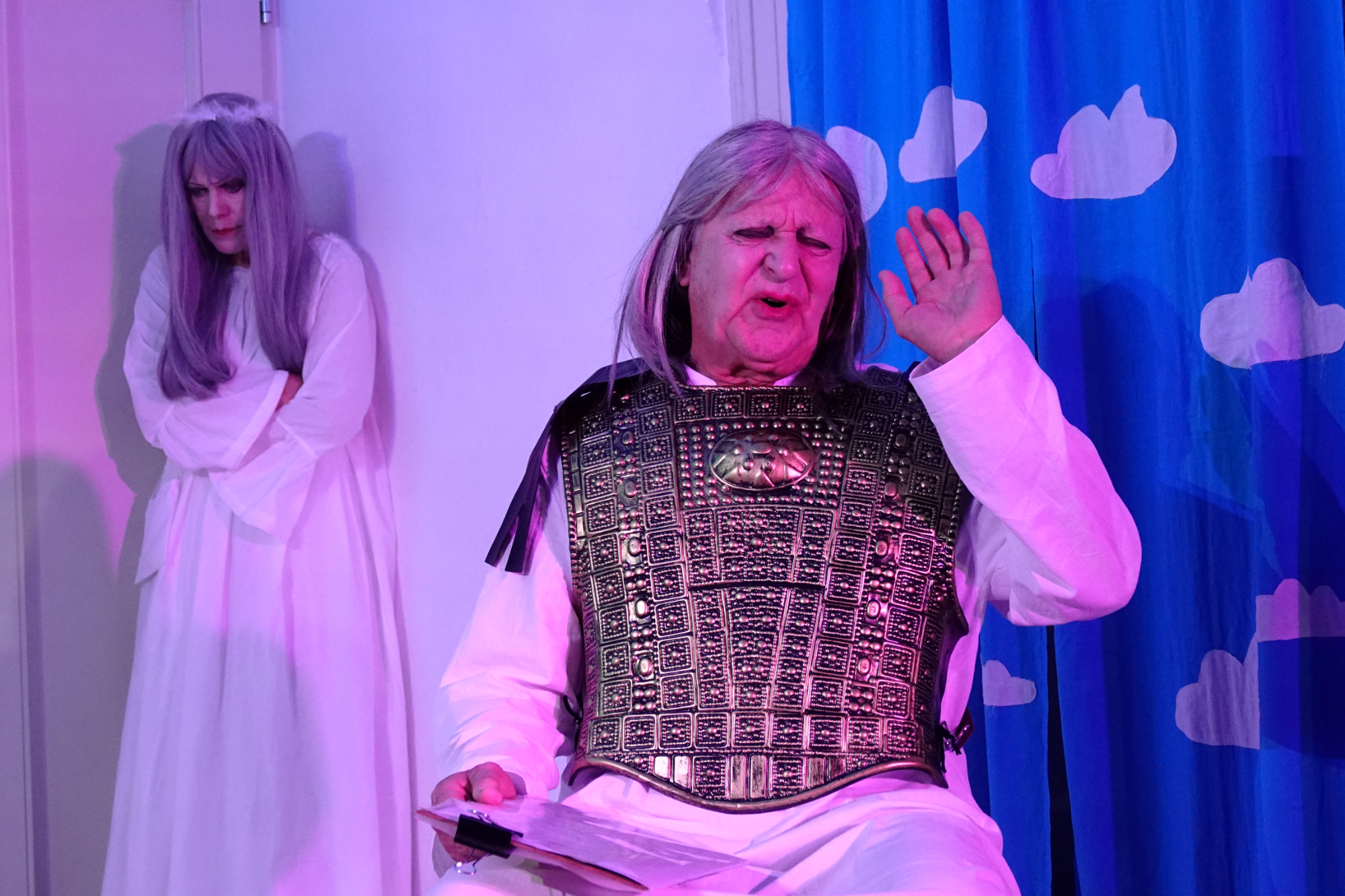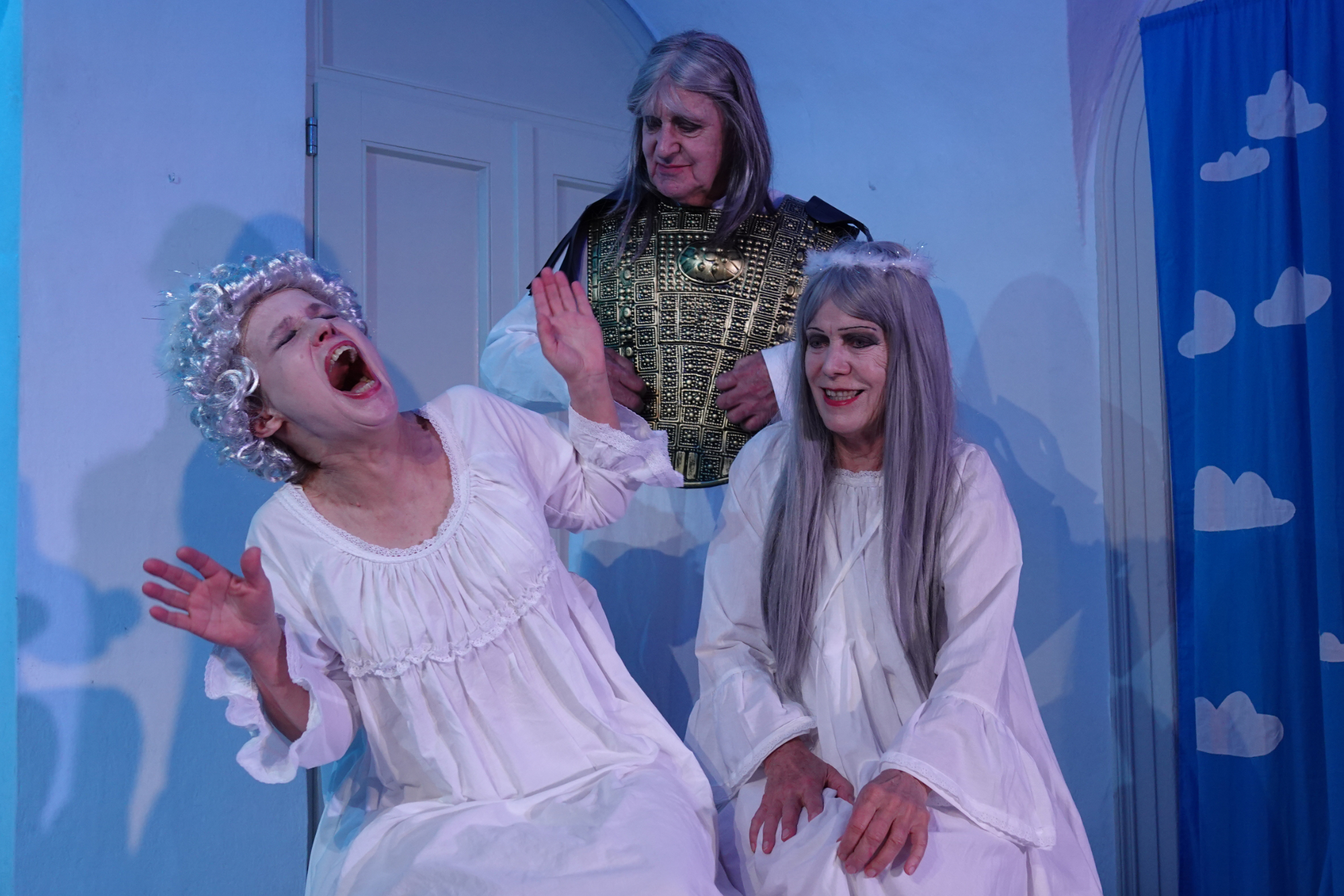 das Warten darauf und die Tristesse der Provinz ... Und dann ist da noch dieser nervige Erzengel Gabriel ... Mit Regine Heintze als Corona Schröter, Heike Meyer als Wilhelmine Probst und Detlef Heintze als Erzengel Gabriel. Schauspiel von Walter Hesse.