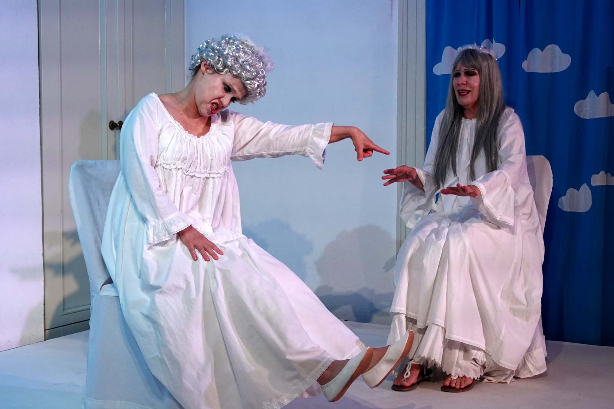 Zwei Engel auf ihrer Wolke – Corona Schröter, die erste Schauspieldiva Weimars und ihre Kammerjungfer Wilhelmine Probst. Gemeinsam blicken sie auf das heutige Weimar und auf ihre künstlerischen Anfänge in dieser Stadt ... Die Hoffnung auf den von Goethe versprochenen epochalen Theaterneuanfang,